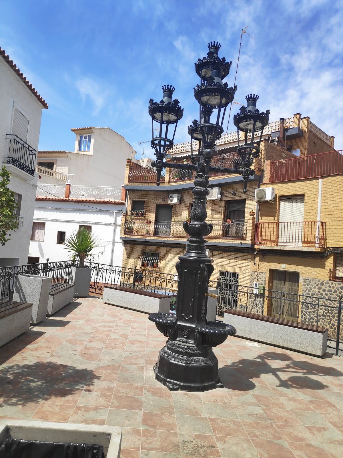 En la parte occidental y subiendo la vista hasta la parte más alta, destaca la Alcazaba, hoy propiedadprivada y en un estado ruinoso; sólo quedan en pié restos de tres torreones y una smurallas que rodearían el pueblo en el siglo X. Pero al margen de ella merece la pena serpentear por su calles, aunque advierto que hay que tener una buena forma física. Dividiendo la población en dos, en el centro la gran plaza de la Constitución, donde yergue la Iglesia parroquial de La Anunciación, creada tras la conquista en el siglo XVI. No puedo hablar del interior pues, no sé si mis horarios no son aptos para casas de oración, pero casi el ochenta por ciento de las posibles visitas están cerradas.